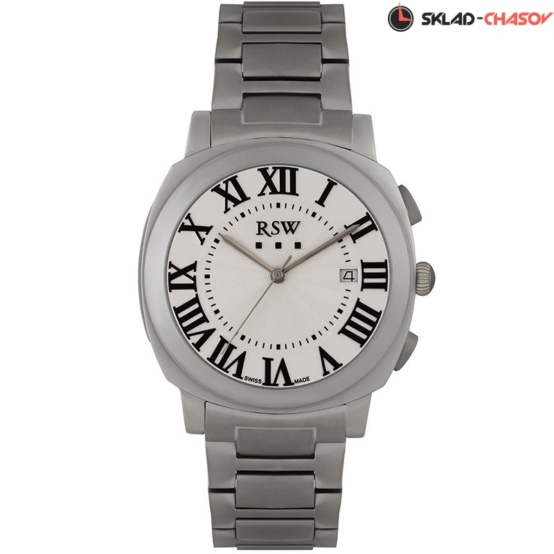 Кварцевые Мужские часы RSW, коллекция Romeo (RSWM118-TT-2), производство ШВЕЙЦАРИЯ, диаметр - 43 мм, материал корпуса - Матовая оружейная сталь, Браслет, материал браслета - Матовая оружейная сталь, циферблат - Серый, Римские цифры, Дата