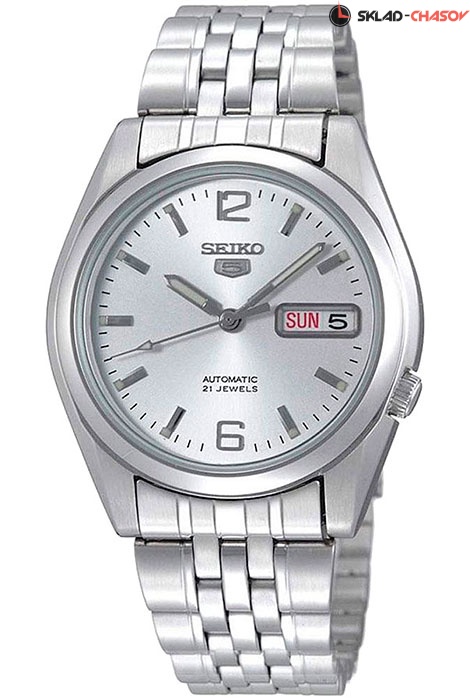 Мужские механические наручные часы с автоподзаводом Seiko SNK385K1 (SNK385K1S) коллекции Seiko 5. Калибр механизма — 7S26. Запас хода - не менее 40-ка часов. 21 600 полуколебаний в час. Количество камней - 21. На данной модели отображается дата и день недели. Стрелки и метки покрыты люминесцентным напылением LumiBright (светятся в темноте). Установлено минеральное стекло повышенной прочности Hardlex Crystal. Прозрачная завинчивающаяся задняя крышка часов. Стальной браслет. Водонепроницаемость WR (3 атм).