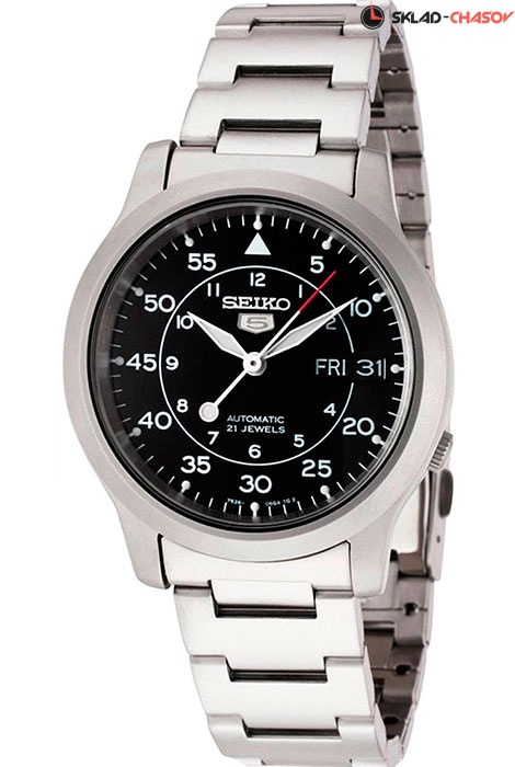 Мужские механические наручные часы с автоподзаводом Seiko SNK809K1 (SNK809K1S) коллекции Seiko 5. Калибр механизма — 7S26. Запас хода - не менее 40-ка часов. 21 600 полуколебаний в час. Количество камней - 21. На данной модели отображается дата и день недели. Стрелки и метки покрыты люминесцентным напылением LumiBright (светятся в темноте). Установлено минеральное стекло повышенной прочности Hardlex Crystal. Прозрачная завинчивающаяся задняя крышка часов. Стальной браслет. Водонепроницаемость WR (3 атм).