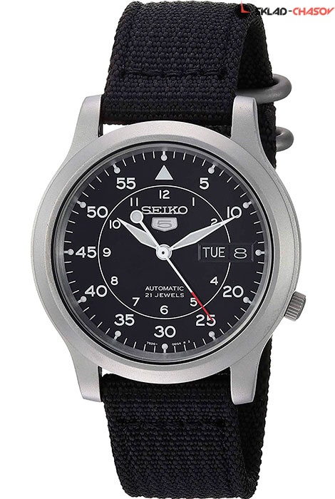 Мужские механические наручные часы с автоподзаводом Seiko SNK809K2 (SNK809K2S) коллекции Seiko 5. Калибр механизма — 7S26. Запас хода - не менее 40-ка часов. 21 600 полуколебаний в час. Количество камней - 21. На данной модели отображается дата и день недели. Стрелки и метки покрыты люминесцентным напылением LumiBright (светятся в темноте). Установлено минеральное стекло повышенной прочности Hardlex Crystal. Прозрачная завинчивающаяся задняя крышка часов. Текстильный ремешок. Водонепроницаемость WR (3 атм).