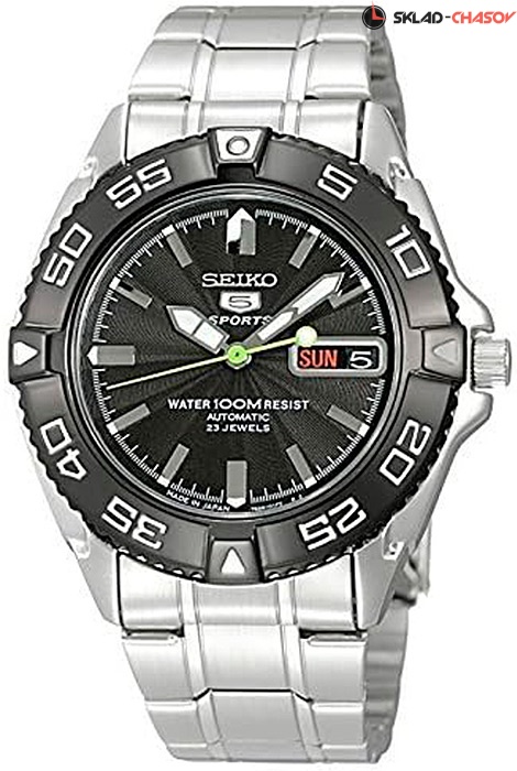 Мужские механические наручные часы японского производства с автоподзаводом Seiko SNZB23J1 коллекции Seiko 5 Sports. Калибр механизма — 7S36. Запас хода - не менее 40-ка часов. 21 600 полуколебаний в час. Количество камней - 23. На данной модели отображается дата и день недели. Стрелки и метки покрыты люминесцентным напылением LumiBright (светятся в темноте). Установлено минеральное стекло повышенной прочности Hardlex Crystal. На корпус частично нанесено стойкое PVD покрытие. Вращающийся безель. Прозрачная завинчивающаяся задняя крышка часов. Стальной браслет. Водонепроницаемость WR100 (10 атм). Японская сборка (Made In Japan).