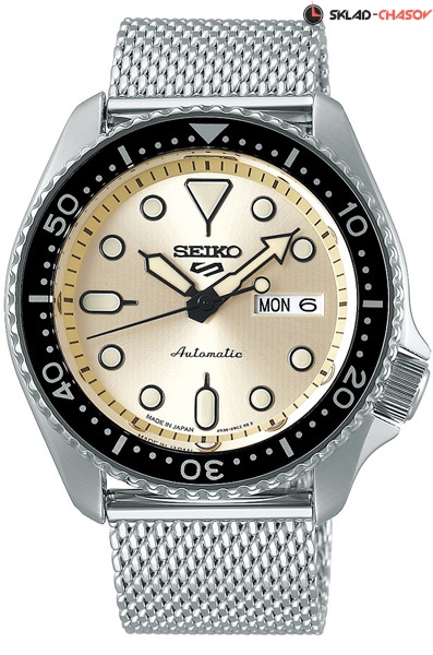 Механические наручные часы с автоподзаводом и возможностью ручного завода Seiko SRPE75K1 коллекции Seiko 5 Sports. Калибр механизма — 4R36. Запас хода более 40-ка часов. 21 600 полуколебаний в час. Количество камней - 24. На данной модели отображается текущая дата и день недели. Функция стоп-секунда (остановка секундной стрелки для установки точного времени). Стрелки и метки покрыты люминесцентным напылением LumiBright (светятся в темноте). На данную модель установлено минеральное стекло повышенной прочности Hardlex Crystal. Стальной браслет с миланским плетением. Вращающийся безель. На корпус частично нанесено стойкое PVD покрытие. Прозрачная завинчивающаяся задняя крышка часов. Водонепроницаемость WR100 (10 атм).