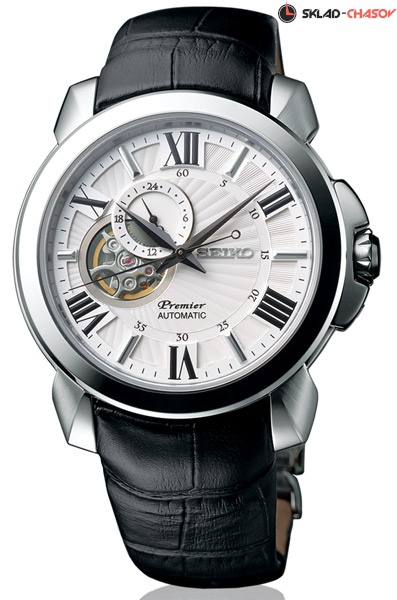 Мужские механические наручные часы с автоподзаводом и возможностью ручного завода Seiko SSA373J1 коллекции Premier Японской сборки. Калибр механизма — 4R39. Запас хода более 40-ка часов. 21 600 полуколебаний в час. Количество камней - 24. На данной модели отображается время суток (24-х часовая шкала). Функция стоп-секунда (остановка секундной стрелки для установки точного времени). На циферблате расположено прозрачное окошко, через него частично видно работу механизма. Сапфировое стекло. Ремешок — телячья кожа. Удобная застежка автоматическая клипса. Прозрачная завинчивающаяся задняя крышка часов. Водонепроницаемость WR100 (10 атм). Японская сборка (Made In Japan).