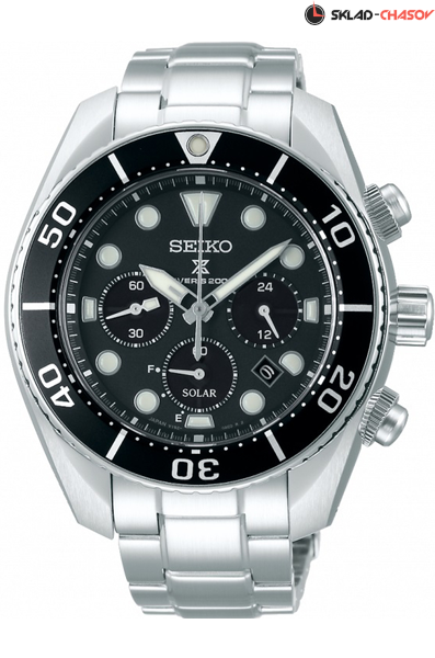 Мужские кварцевые наручные часы с хронографом (секундомером) на солнечной батарее Seiko SSC757J1 коллекции Prospex. Калибр механизма — V192. Аккумулятор данной модели заряжается от любого источника света. Срок работы аккумулятора с полным зарядом — около 6-ти месяцев. Примерный срок службы аккумулятора — 10 лет. Присутствует функция информирования о недостаточном заряде. Секундомер может отсчитывать до 60 минут с шагом 1/5 секунды. На данной модели отображается дата и время суток (шкала 24 часа). Стрелки и метки покрыты люминесцентным напылением LumiBright (светятся в темноте). Установлено сапфировое стекло (устойчиво к царапинам). Вращающийся безель. На корпус данной модели частично нанесено PVD покрытие. Высокая степень водонепроницаемости WR200 (20 атм). Дайверская модель, степень водонепроницаемости соответствует стандарту ISO 6425. Завинчивающаяся заводная головка, кнопки хроногрофа и задняя крышка часов. Специальный удлиняющийся браслет для возможности использования часов на гидрокостюме. Японская сборка (Made In Japan).