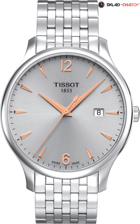 Мужские часы с классическими деталями и тонкой винтажной отделкой. Накладные полированные индексы и цифры, апертура даты в положении 3 часов.
