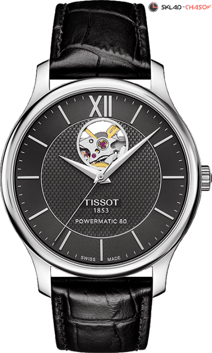 Мужская модель с усложнением открытого колеса баланса. Сквозь окошко, расположенное на 12 часов, видно биение сердца революционного механизма Powermatic 80. Индикация часов, секунд и минут центральными стрелками. Циферблат выполнен с узором гильоше по центру.