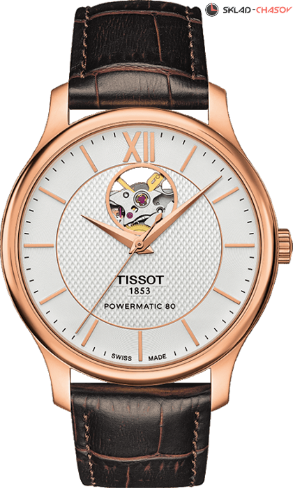 Мужская модель с усложнением открытого колеса баланса. Сквозь окошко, расположенное на 12 часов, видно биение сердца революционного механизма Powermatic 80. Индикация часов, секунд и минут центральными стрелками. Циферблат выполнен с узором гильоше по центру.