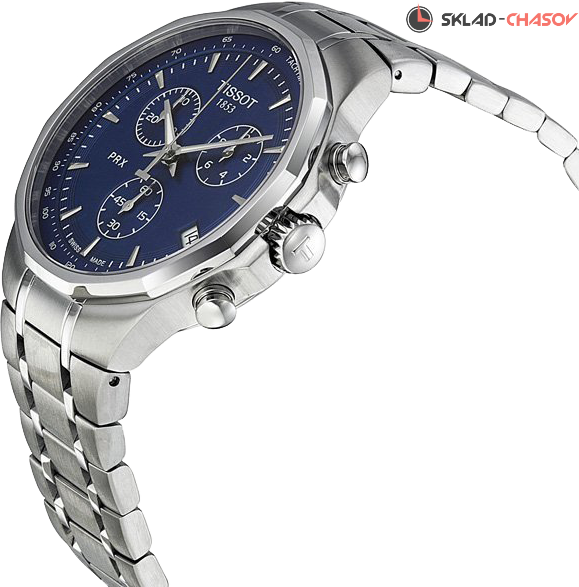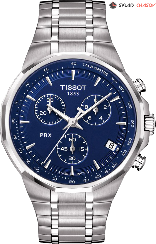 Мужской хронограф. Малая секунда в положении 6 часов, 30-минутный счетчик на 10 часов и счетчик 1\10 секунды на 2 часа. Апертура даты расположена между 4 и 5 часами.