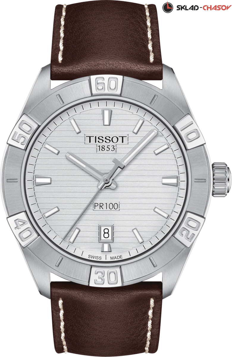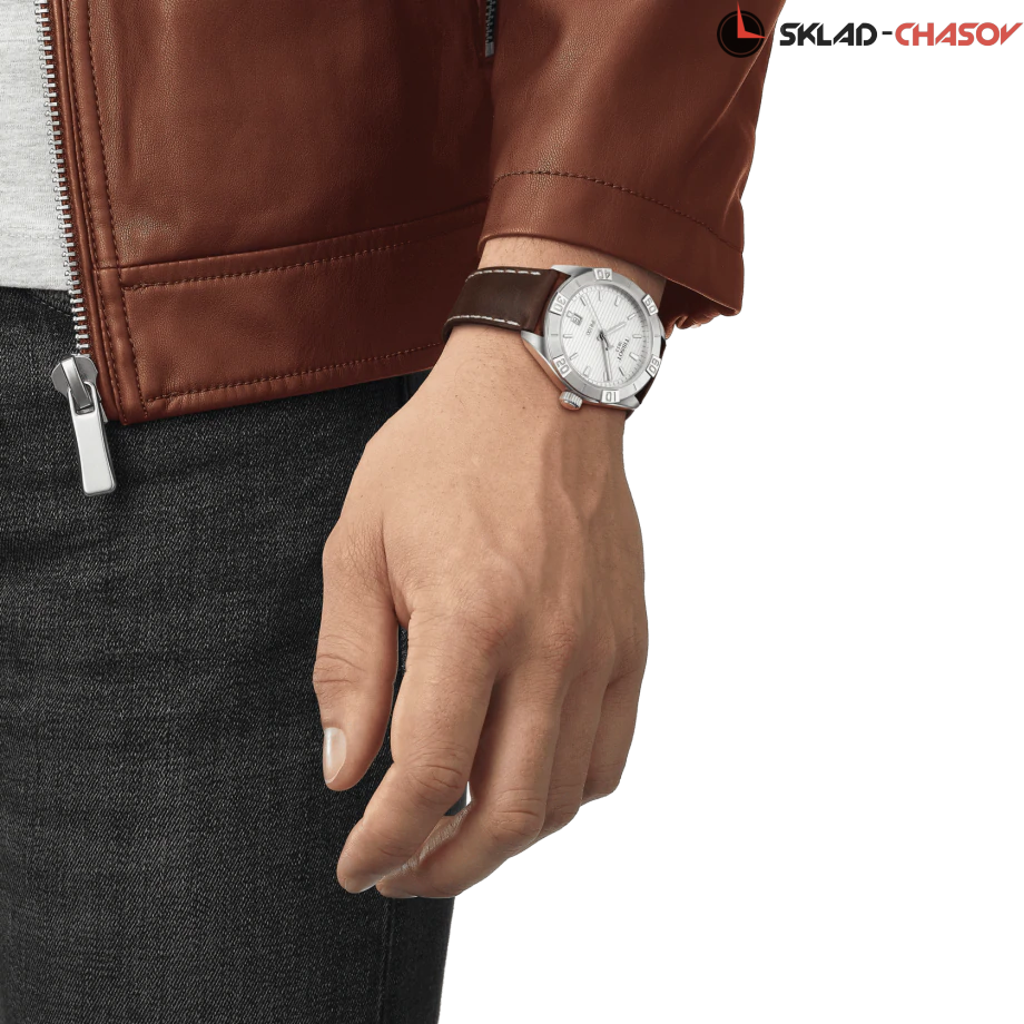 Мужская кварцевая модель, индикация времени центральными стрелками. Апертура даты расположена в районе 6 часов.