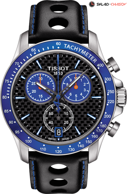 Счетчик 1/10 секунды в положении 2 часа, 30-минутный счетчик на 10 часов и малая секунда на 6 часов. Окошко даты расположено на 6 часов. Тахиметрическая шкала на безеле.