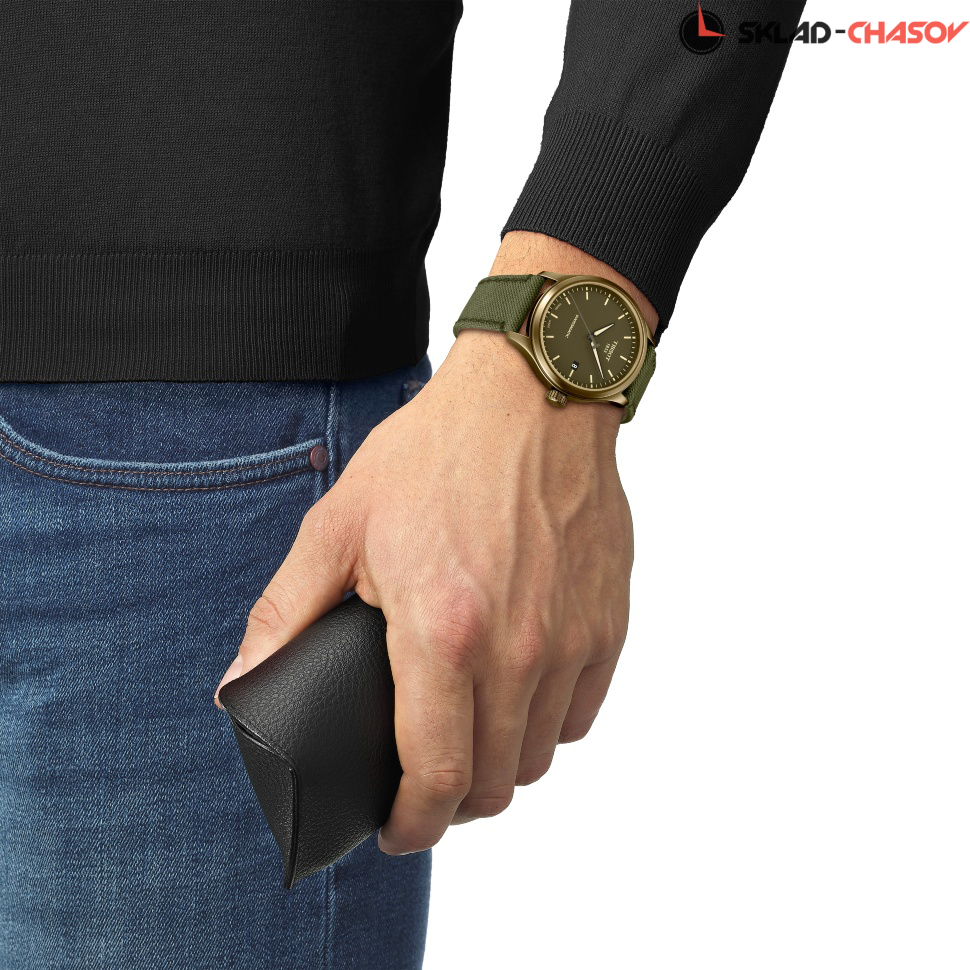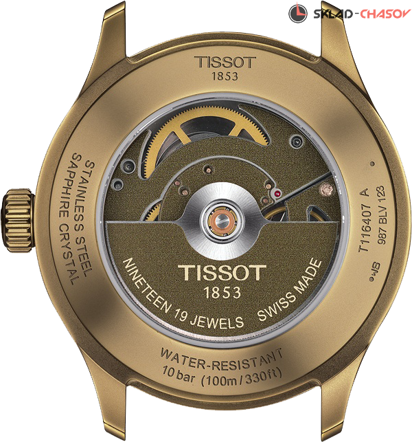Мужская модель с индикацией минут, часов и секунд центральными стрелками. Индикация даты в положении 3 часов, прозрачная задняя крышка.