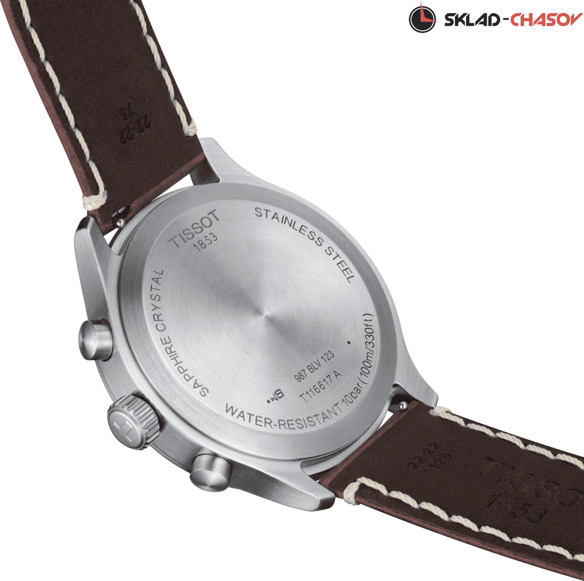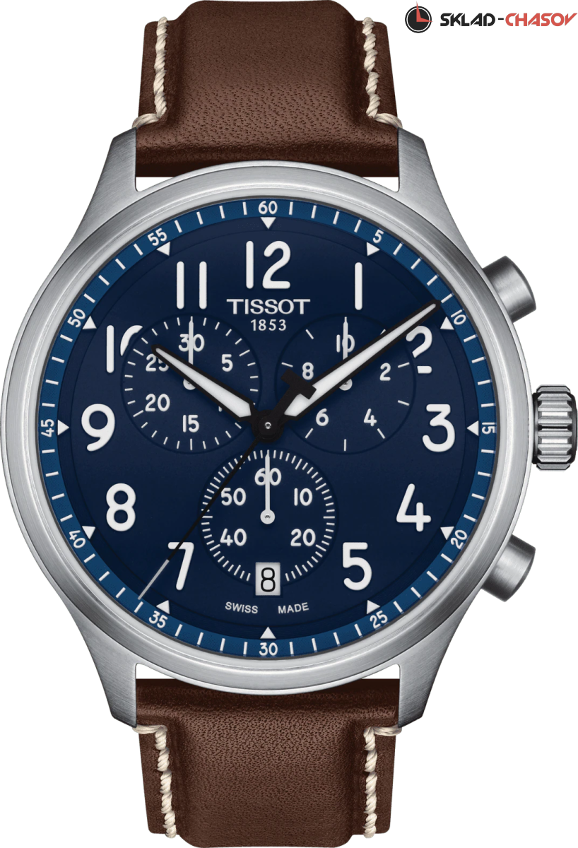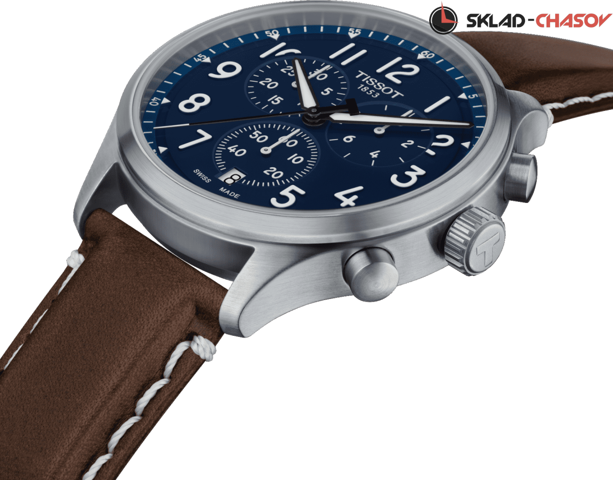Tissot Chrono XL Vintage Мужской хронограф. Малая секунда в положении 6 часов, 30-минутный счетчик на 10 часов и счетчик 1\10 секунды на 2 часа. Апертура даты расположена между 4 и 5 часами.