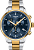 Мужской кварцевый хронограф. Окошко даты в положении 4 часа, малая секунда в положении 6 часов, 30-минутный счетчик на 10 часов и счетчик 1\10 секунды на 2 часа.