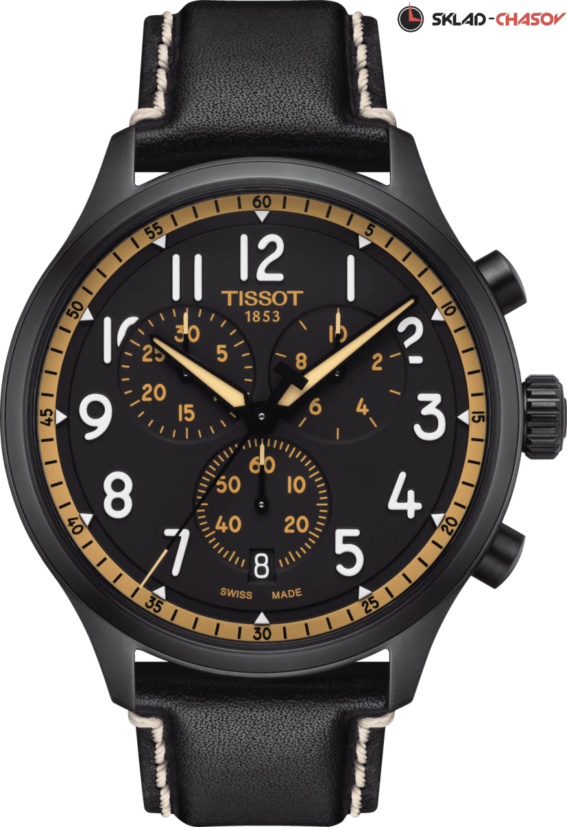 Tissot Chrono XL Vintage Мужской хронограф. Малая секунда в положении 6 часов, 30-минутный счетчик на 10 часов и счетчик 1\10 секунды на 2 часа. Апертура даты расположена между 4 и 5 часами.