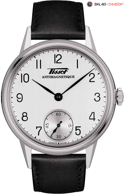 Мужские часы, напоминающие модель коллекции Tissot 1943 года выпуска. Оригинальный логотип на выпуском циферблате, миниатюрный счетчик в положении 6 часов.