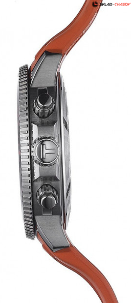 Мужской спортивный хронограф, индикация часов и минут центральными стрелками, малая секундная стрелка в положении 6 часов, окошко даты в положении 4 часа, однонаправленно вращающийся безель, завинчивающаяся заводная коронка