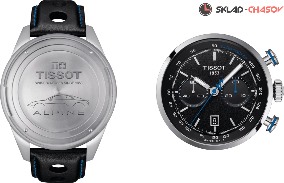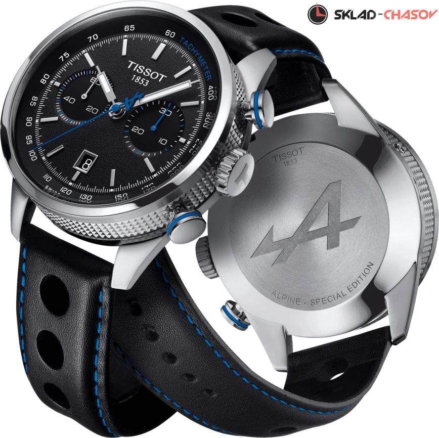 Уникальная концептуальная модель. Корпус может быть отсоединен от браслета и расположен на алюминиевой панели Alpine A110. Двухсекционный хронограф. Секундная стрелка с наконечником-логотипом, люминесцентное покрытие стрелок и разметки, двойная задняя крышка с гравировкой.