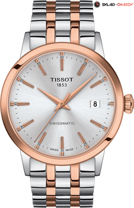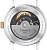 Мужская модель с индикацией минут, часов и секунд центральными стрелками. Индикация даты в положении 3 часов, прозрачная задняя крышка.