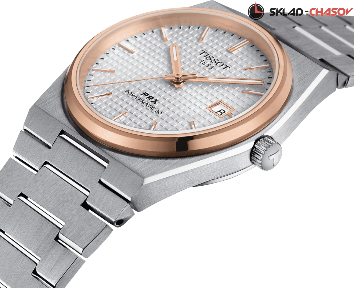 Перевыпуск известной коллекции PRX 1978 года, стильный и изящный корпус мужских часов с апертурой даты на 3 часах, плавный переход корпуса в браслет. Гильошированный циферблат с рисунком clou de Paris (парижские гвозди). Новый автоматический механизм POWERMATIC 80.111 с запасом хода 80 часов и защитой от магнитных полей (используется пружина баланса Nivachron изготовленная из титановго сплава)