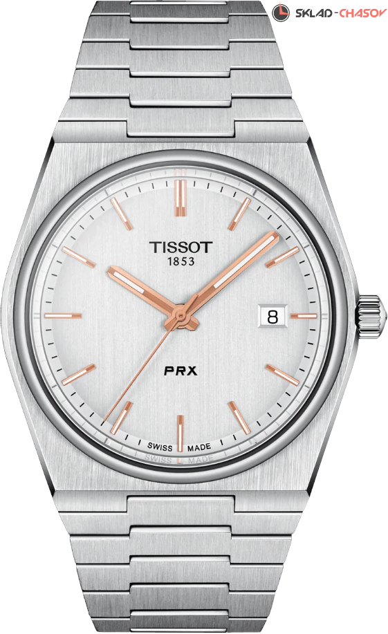 перевыпуск известной коллекции PRX 1978 года, стильный и изящный корпус мужских часов с апертурой даты на 3 часах, плавный переход корпуса в браслет