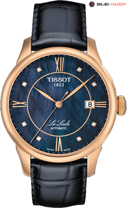 Мужская классическая модель олицворяющая дань уважения городу Le Locle, расположенному в Швейцарских горах Юра, ставшему родиной компании Tissot, перламутровый циферблат украшен бриллиантами
