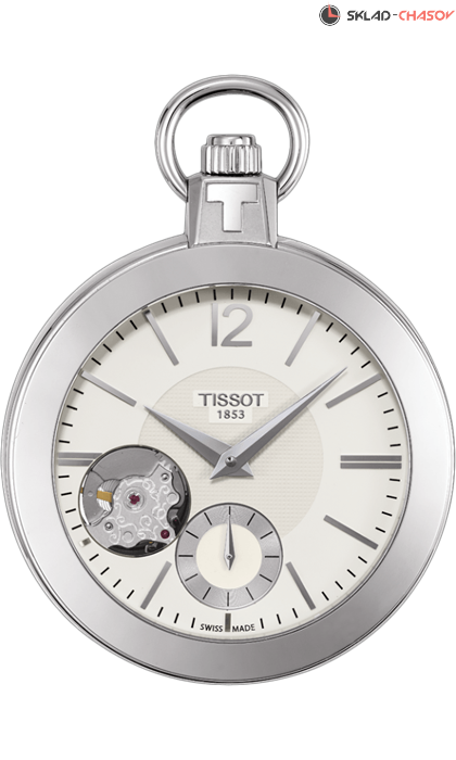 Мужские карманные часы, индикация часов и минут центральными стрелками, малая секундная стрелка в положении 6 часов, открытое колесо баланса в положении 7 часов