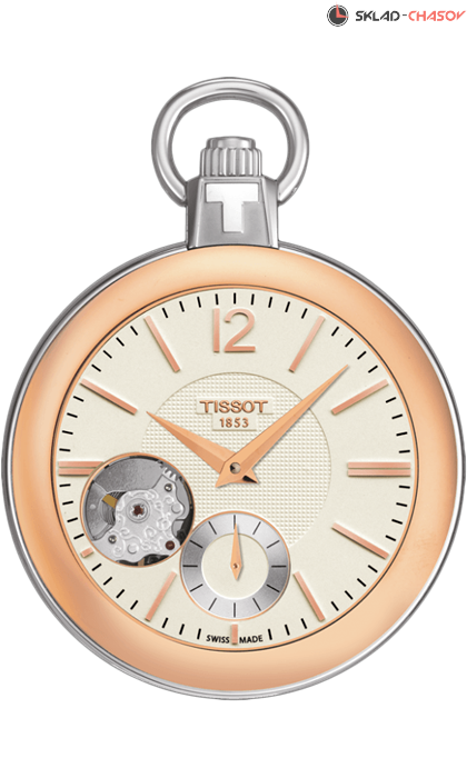 Мужские карманные часы, индикация часов и минут центральными стрелками, малая секундная стрелка в положении 6 часов, открытое колесо баланса в положении 7 часов