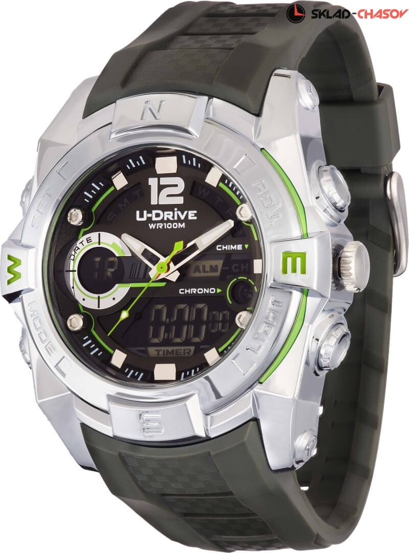 Часы U-Drive – надежный спутник активных и энергичных, тех, кто выбирает экстрим и свободу. Поэтому водостойкость модели повышенная — 10 атмосфер, а задняя крышка закреплена на винтах. В часах можно плавать и заниматься водными видами спорта. Во время тренировок, походов с палатками или в клуб, просто на прогулке с друзьями — часы U-Drive везде будут уместны. Их дизайн легко сочетается со спортивной формой или любой другой повседневной одеждой.