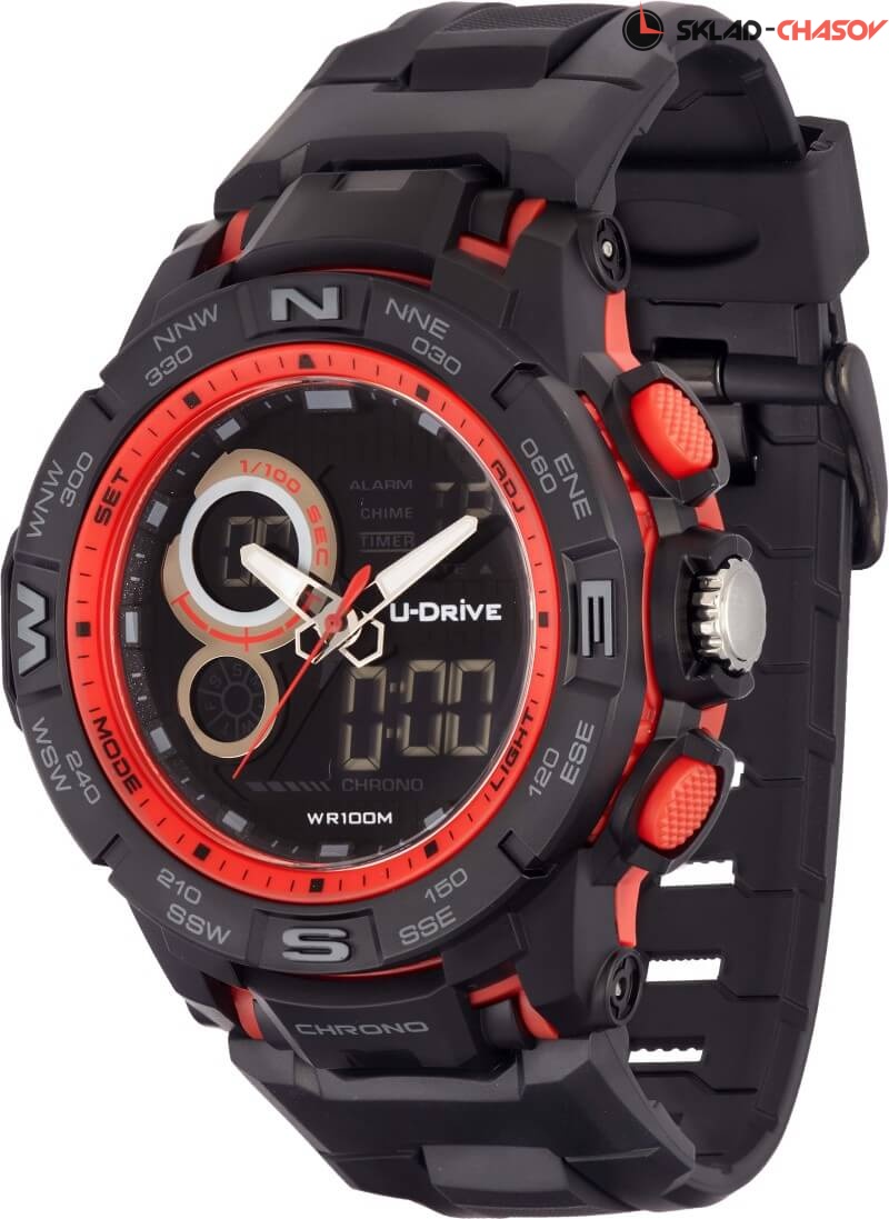 Часы U-Drive – надежный спутник активных и энергичных, тех, кто выбирает экстрим и свободу. Поэтому водостойкость модели повышенная — 10 атмосфер, а задняя крышка закреплена на винтах. В часах можно плавать и заниматься водными видами спорта. Во время тренировок, походов с палатками или в клуб, просто на прогулке с друзьями — часы U-Drive везде будут уместны. Их дизайн легко сочетается со спортивной формой или любой другой повседневной одеждой.