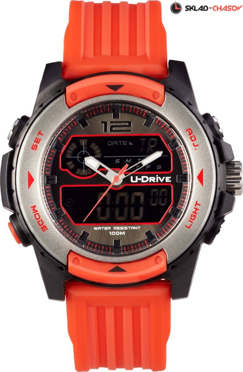Часы U-Drive – надежный спутник активных и энергичных, тех, кто выбирает экстрим и свободу. Поэтому водостойкость модели повышенная — 10 атмосфер, а задняя крышка закреплена на винтах. В часах можно плавать и заниматься водными видами спорта. Во время тренировок, походов с палатками или в клуб, просто на прогулке с друзьями — часы U-Drive везде будут уместны. Их дизайн легко сочетается со спортивной формой или любой другой повседневной одеждой.