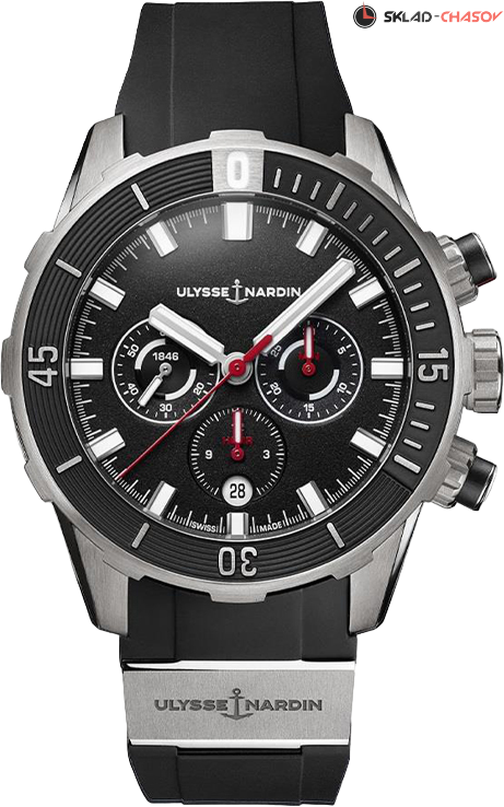 Профессиональные часы для дайвинга с чёрным матовым циферблатом, и индикацией запаса хода. Вращающийся в одном направлении безель покрыт слоем вулканизированного каучука.