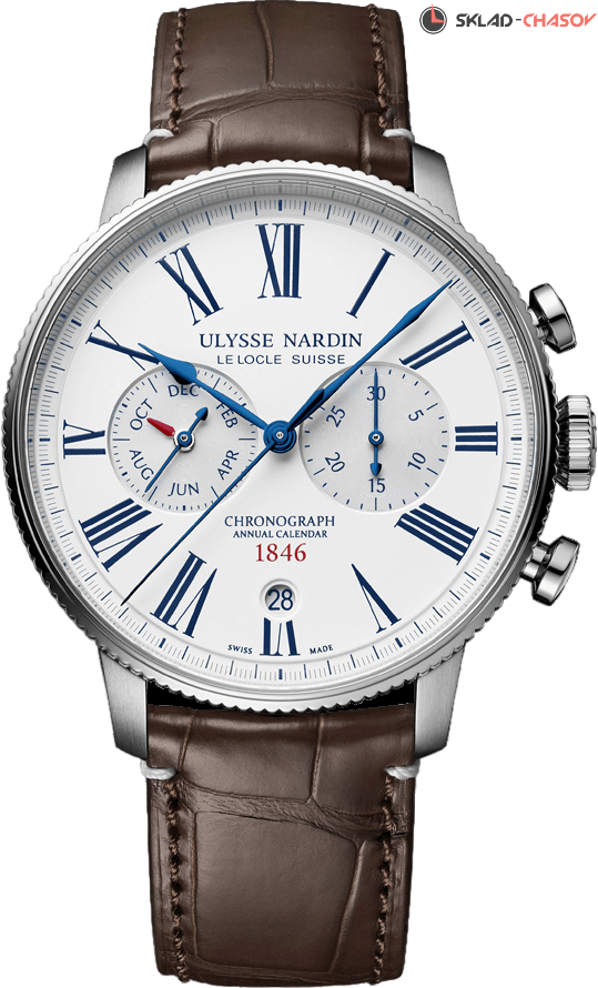 Marine Torpilleur Annual Chronograph с годовым календарем в корпус из нержавеющей стали с белым цветом циферблата и черным каучуковым ремешком, на безе нового мануфактурного калибра UN-153. Благодаря функции годового календаря, вы корректируете время один раз в год в Феврале. Указатель месяца с ярко-красной стрелкой совмещен с секундами в положении на 9 часов. 30-минутный счетчик хронографа находиться на 3 часа.
