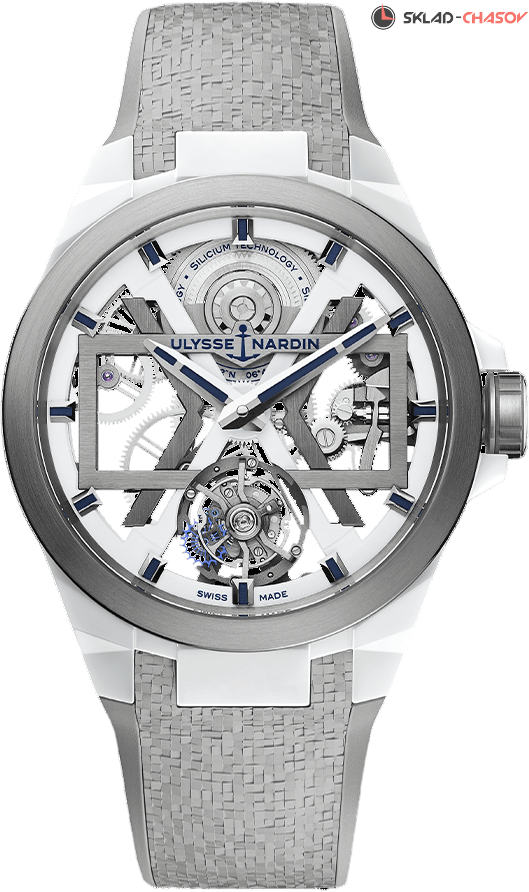 Сверхлегкий титановый корпус с керамическим безелем, скелетонизированный циферблат, «парящий» турбийон. В часах установлен мануфактурный калибр UN-172 с «парящим» турбийоном. За его работой можно наблюдать через прозрачные сапфировые стекла.