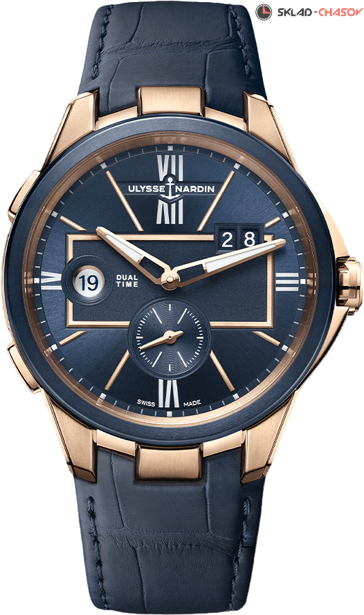 Мужские модель из 18-ти каратного розового золота с индикацией второго часового пояса. Индикация домашнего времени, расположена на 9 часах. Часы дополняет ремешок из кожи аллигатора.