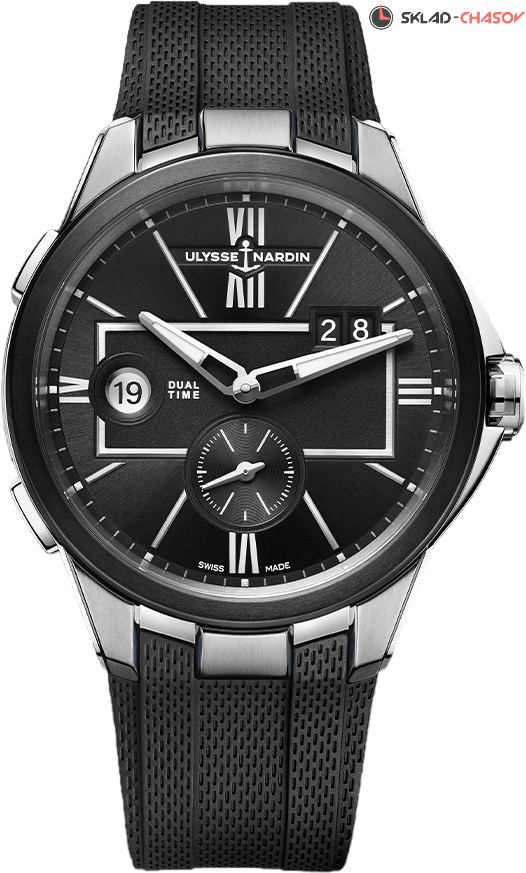 Мужские модель в стальном корпусе с индикацией второго часового пояса. Индикация домашнего времени, расположена на 9 часах. Часы дополняет каучуковый ремешок.