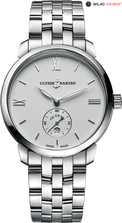 Классическая модель из нержавеющей стали с новым мануфактурным калибром Un-320. Циферблат черного цвета украшен накладными римскими цифрами и часовыми метками багетной формы. Часы комплектуются ремешком черного цвета из кожи аллигаторас классической застежкой.