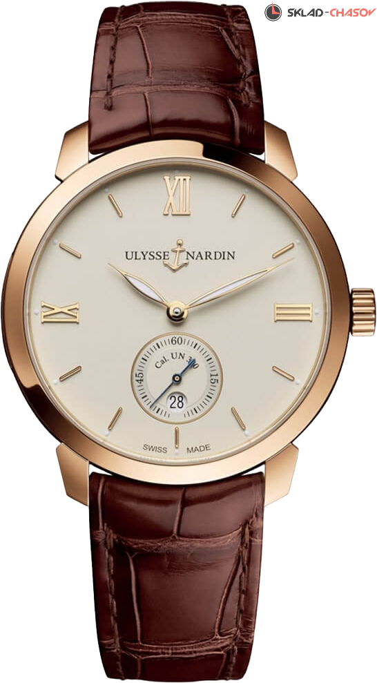 Классическая модель из нержавеющей стали с новым мануфактурным калибром Un-320. Циферблат черного цвета украшен накладными римскими цифрами и часовыми метками багетной формы. Часы комплектуются ремешком черного цвета из кожи аллигаторас классической застежкой.
