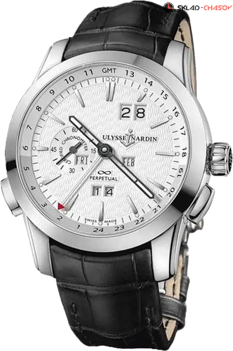 Классическая модель из платины с мануфактурным калибром Un-32. Циферблат белого цвета украшен накладными индексами. Часы комплектуются ремешком чёрного цвета.