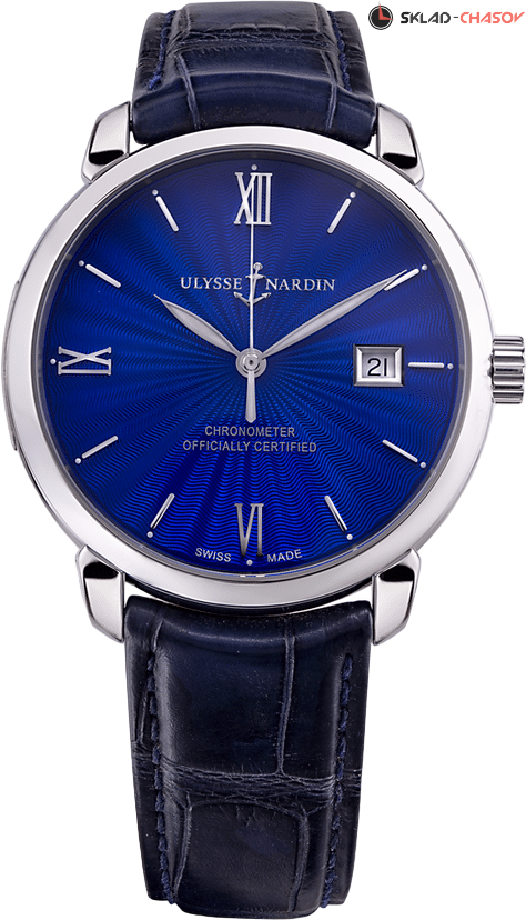 Мужские часы заключены в круглый корпус из полированной нержавеющей стали, выполнены в размере 40 мм. Автоматический калибр с запасом хода 42 часа прошел сертификацию COSC. Синий гильошированный циферблат покрыт эмалью, созданной в технике grand-feu, отличающейся сложным технологическим процессом. На синем фоне четко выделяются серебристые стрелки часов, секунд и минут, а также часовые индексы, продублированные люминесцентными точками. Середина часовой и минутной стрелок покрыта слоем люминофора. В позиции «3 часа» установлена апертура даты. Модель дополнена красивым синим ремешком из кожи аллигатора, оснащенным стальной застежкой.