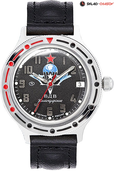 Механические часы с автоподзаводом Восток Командирские 921288 с символикой ВДВ. Механизм калибра 24 мм с центральной секундной стрелкой. В механизме 31 камень. Частота 19800 полуколебаний/час. Запас хода минимум 31 час. Противоударное устройство узла баланса. Поворачивающийся безель. Корпус из часовой латуни с покрытием хромом. Календарь мгновенного действия. Центральная секундная стрелка. На стрелки и часовые метки нанесен светонакопительный состав для возможности считывания времени в темноте. Циферблат закрывает выпуклое органическое стекло. Поворачивающийся безель. Завинчивающаяся заводная головка. Задняя крышка из нержавеющей стали. Ремешок из натуральной кожи с классической застежкой. Гарантия 1 год. Функции: Число. Бренд Восток командирские автоподзавод Пол Мужские Страна Россия Коллекция Командирские Вид механизма Механические часы с автоподзаводом Тип браслета/ремешка Кожаный Корпус Латунь Стекло Пластик Водозащита WR 20 Цвет браслета/ремешка Черный Ширина ремешка 18 Подсветка Стрелок Диаметр 39 мм. Толщина мм 13 мм. Калибр механизма Восток 2416Б Артикул 921288