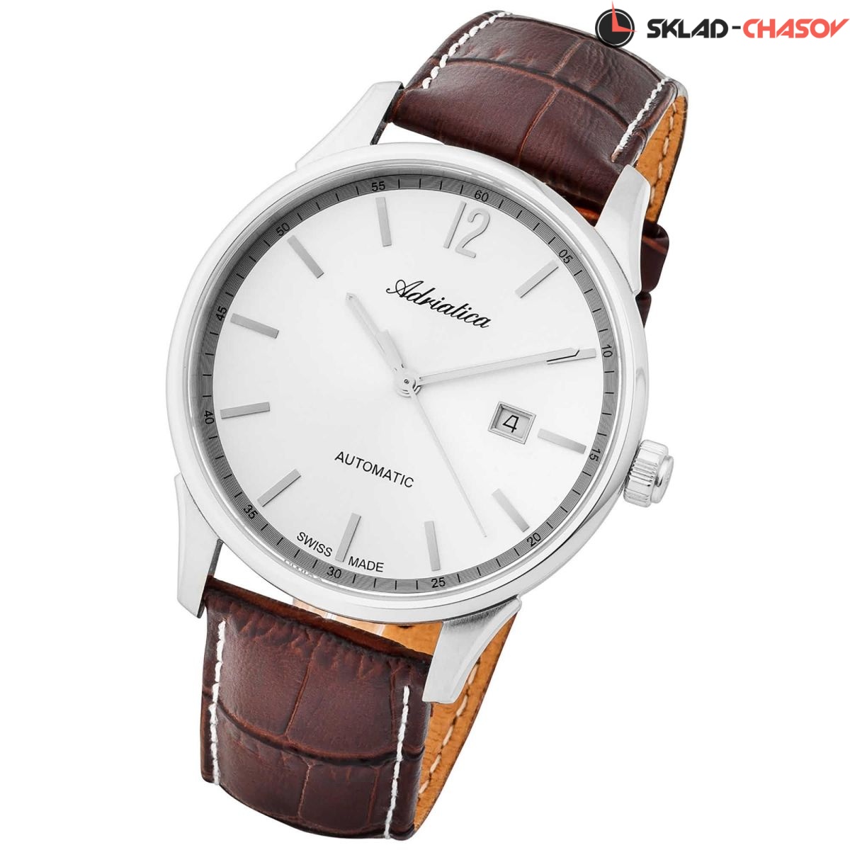Мужские механические наручные часы на кожаном ремешке. Механизм с автоподзаводом. На циферблате присутствует апертура текущей даты. Прозрачная задняя крышка. Ремешок из натуральной кожи с классической застежкой. Вес 75 грамм. Гарантия 2 года.