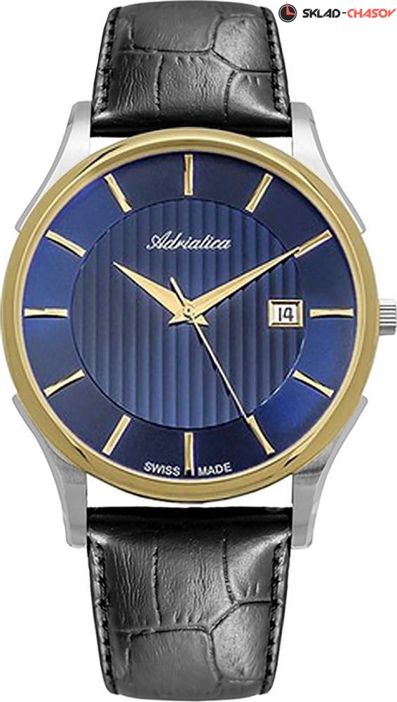 Классические мужские часы от швейцарского бренда Adriatica. На циферблате присутствует апертура текущей даты. Точность хода обеспечивает швейцарский кварцевый механизм ETA F06. Ремешок из натуральной кожи с классической застежкой. Вес часов 54 грамма. Гарантия 2 года.