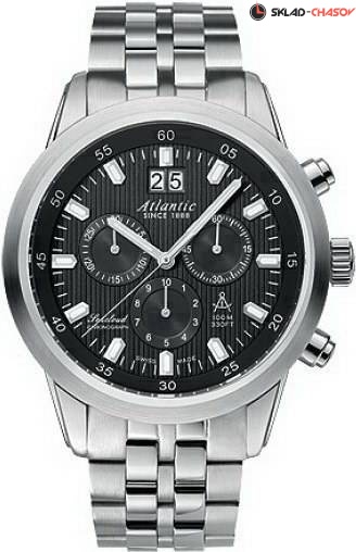 Часы-хронограф с секундомером.Секундомером до 30 мин., с точностью 1/10 сек..Сапфировое стекло с антибликовым покрытием.Механизм Ronda 5040B. Гарантия 2 года.