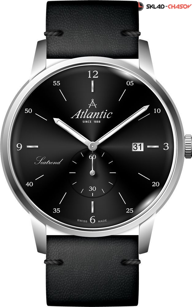 Мужские наручные часы Atlantic с вынесенной на отдельный циферблат секундной стрелкой. Присутствует апертура текущей даты. Кожаный ремешок с классической застежкой. Гарантия 2 года.