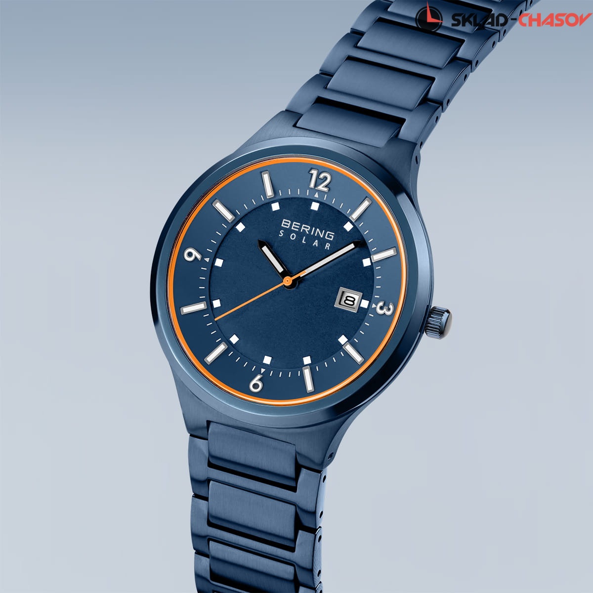 Стальной корпус с сатинажем и синим IP-покрытием. Диаметр 42мм.