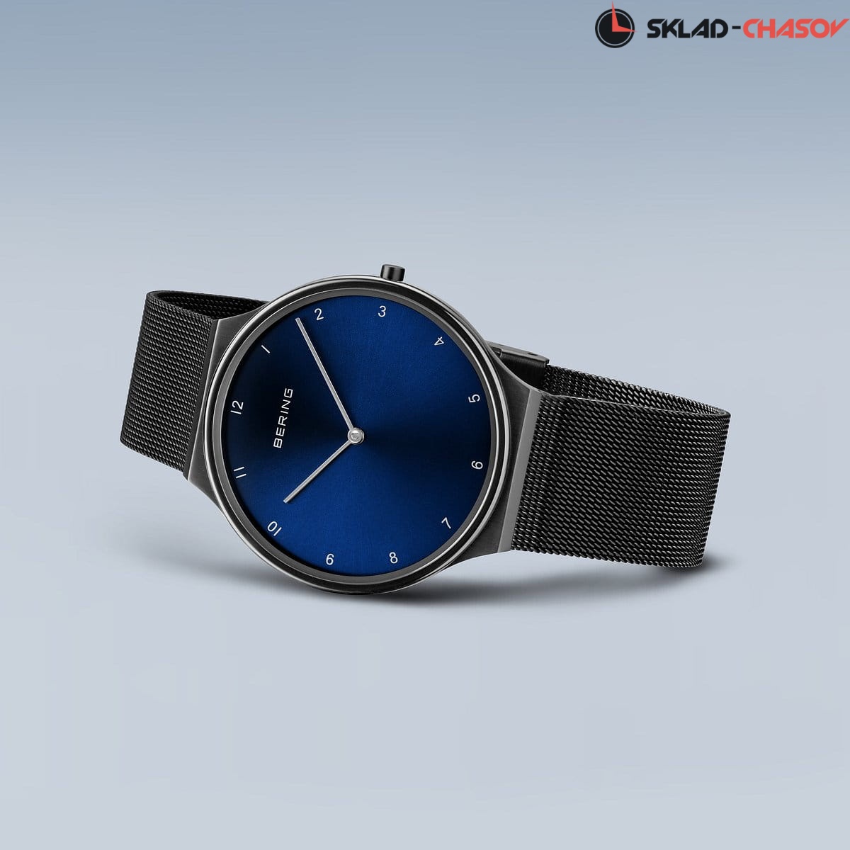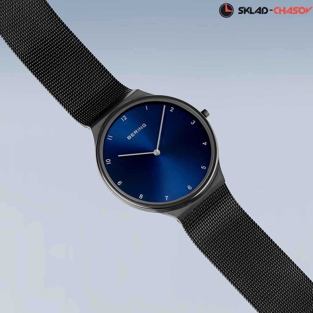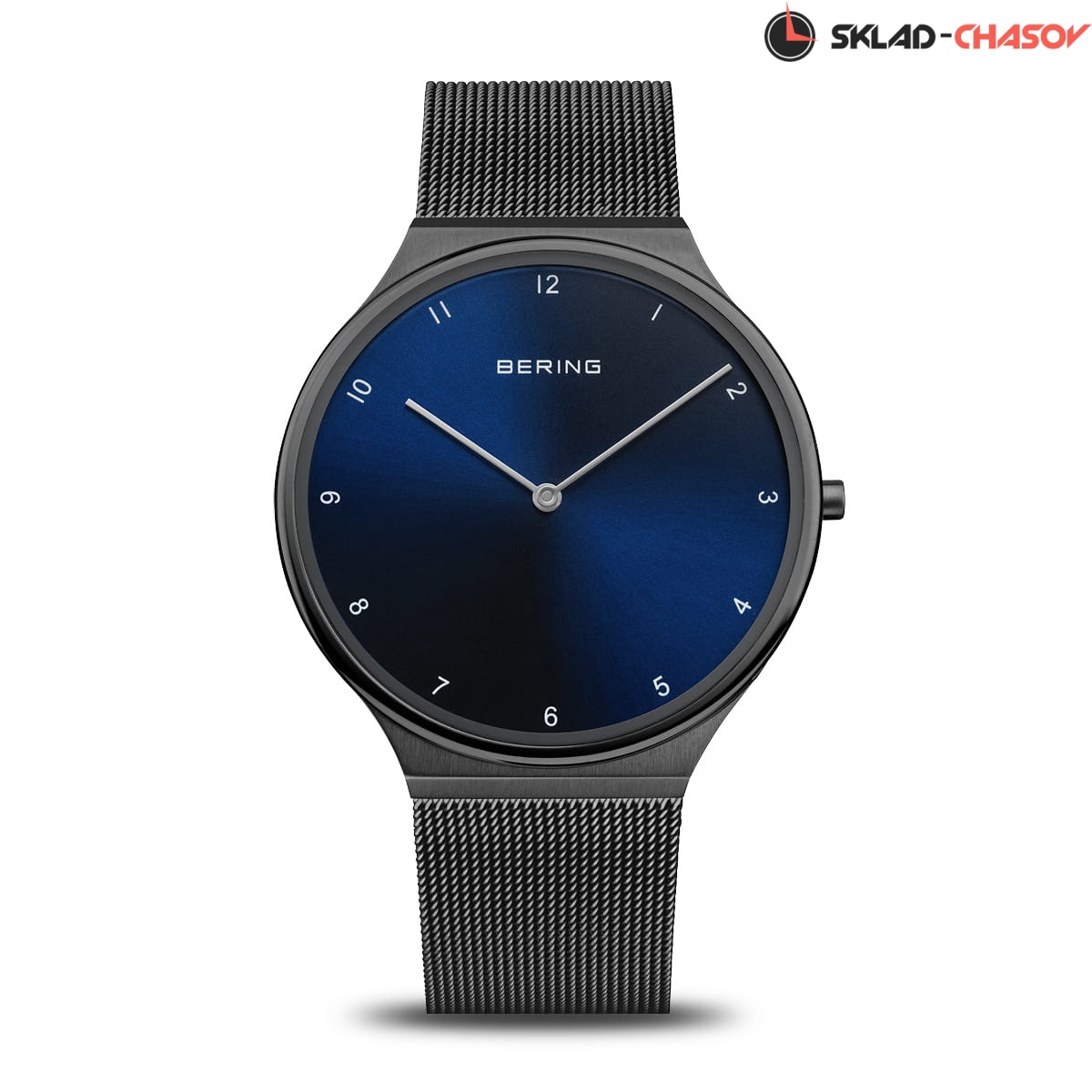 Синий циферблат с гильошированием в виде солнечных лучей.