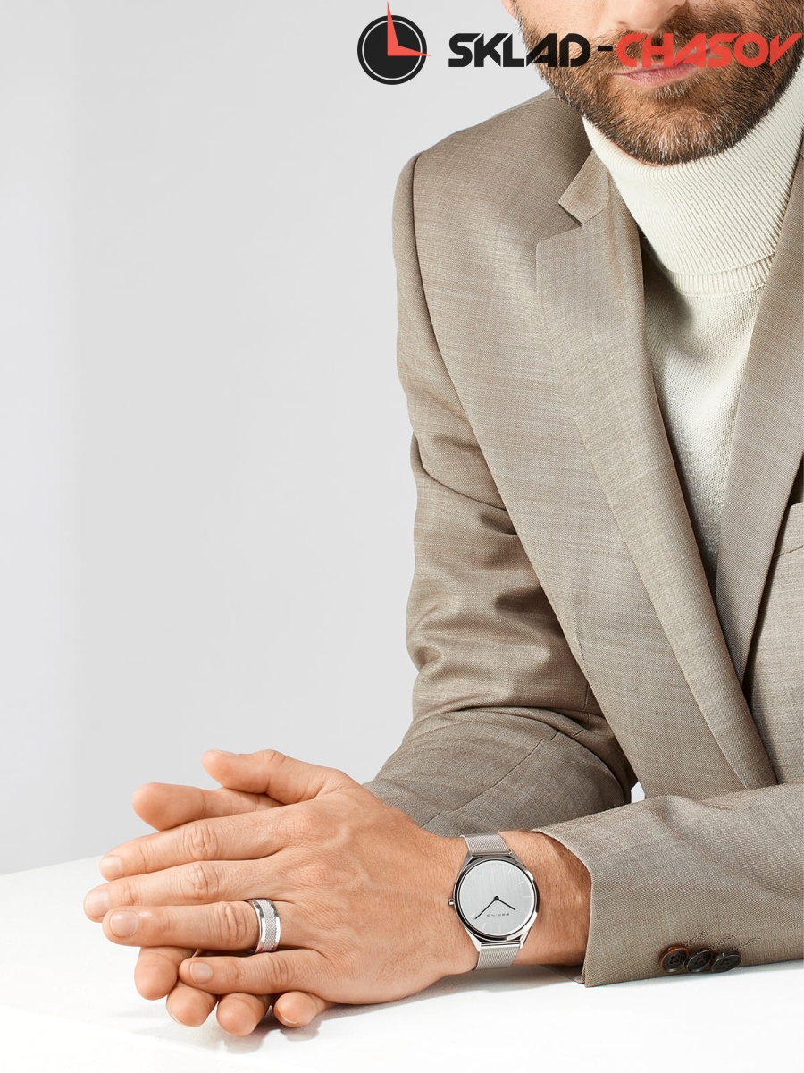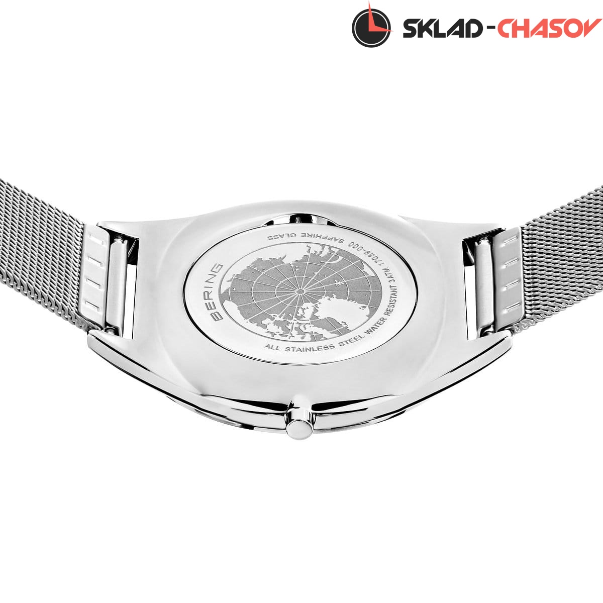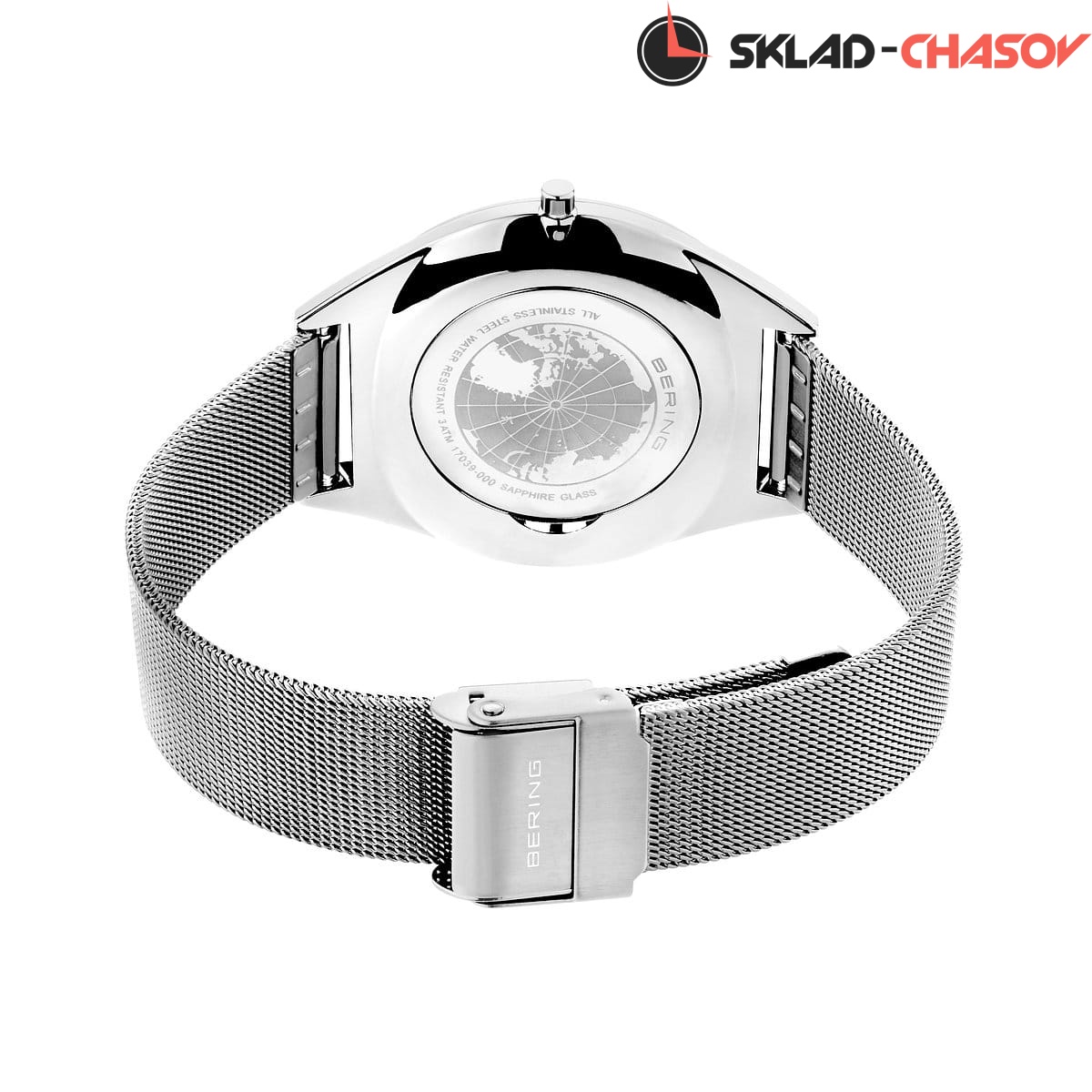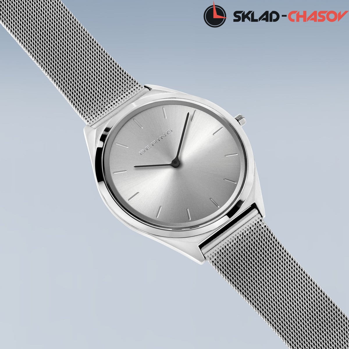 Ультратонкие мужские наручные часы Bering на стальном браслете миланского плетения. Гарантия 3 года.