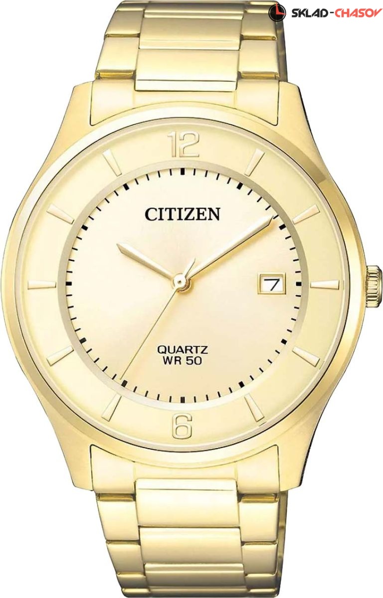 Мужские наручные часы Citizen в классическом круглом корпусе. Присутствует апертура даты. браслет с раскладывающейся застежкой. Гарантия 1 год.