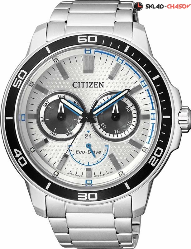 Калибр: 8729. Система Eco-Drive, не требующая замены батарейки. Питание от солнечной энергии, запас энергии на 180 дней. 12-ти и 24-х часовой формат времени. Заводная головка с защитой. Завинчивающаяся задняя крышка. Гарантия 1 год.