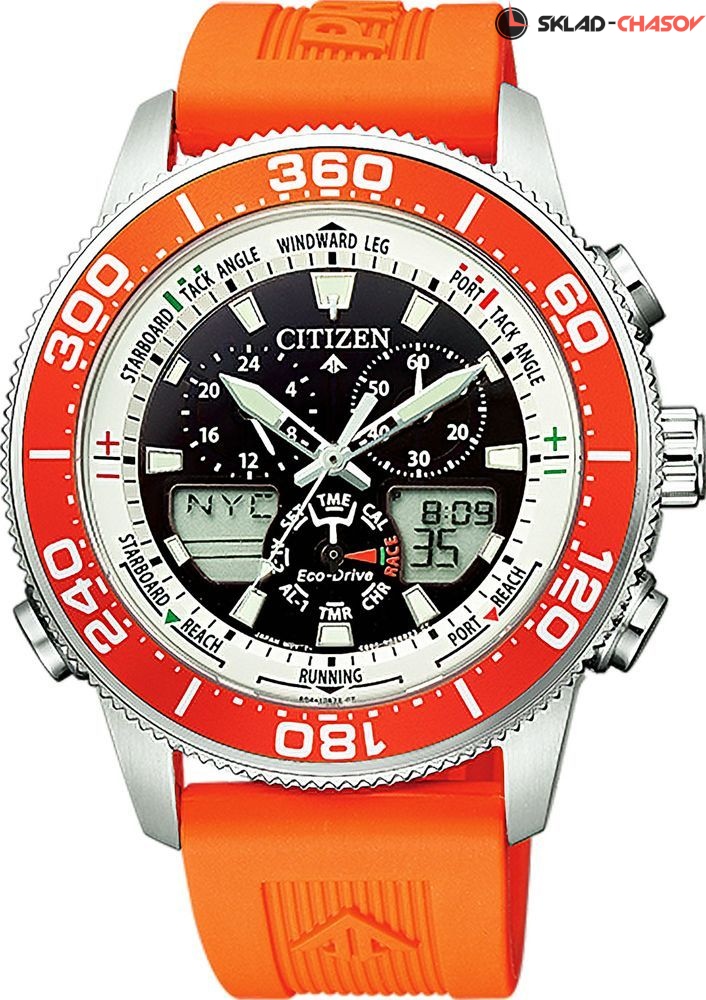 Мужские спортивные часы-хронограф от Citizen - Promaster Marine Eco-Drive Yacht. Секундомер с точностью показаний 1/100 сек. и временем измерения до 24 часов. Система Eco-Drive не требующая замены батарейки, питание от солнечной энергии, запас энергии на 90 дней (до 4-х лет в темноте). Функция индикации заряда (EOL). Второй часовой пояс. Таймер обратного отсчета на 99 минут. Яхт-таймер. Мировое время для 30 городов. 12-ти и 24-х часовой формат времени. Вращающийся безель. Завинчивающиеся заводная головка и задняя крышка. Ремешок с классической застежкой. Гарантия 1 год.